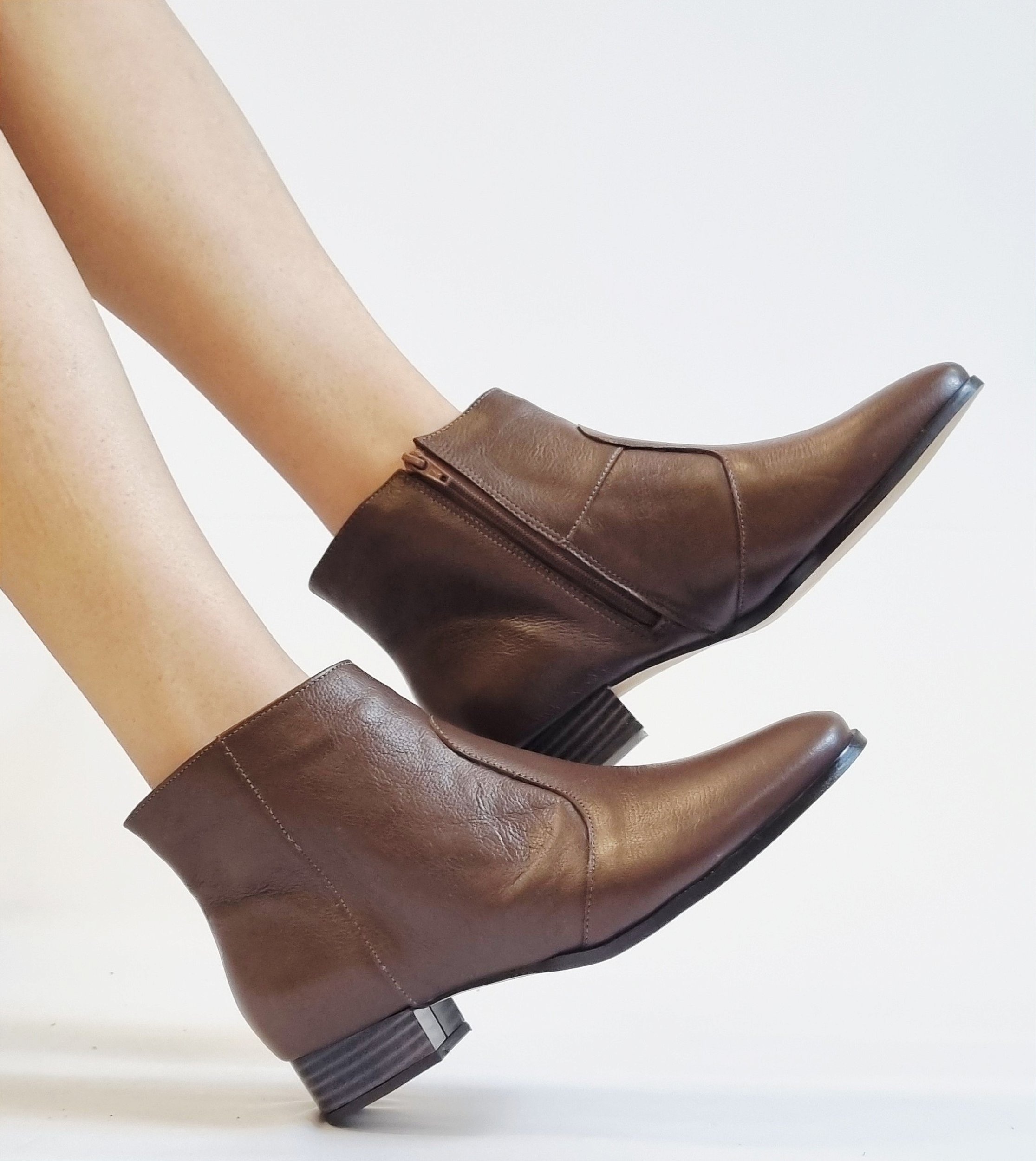 BOTA CONFORTO EM COURO 76986 CAFÉ CELTA / FORRAÇÃO INTERNA EM MALHA CACHARREL E CETIM / PALMILHA DUPLAMENTE ESPUMADA / SOLADO EMBORRACHADO