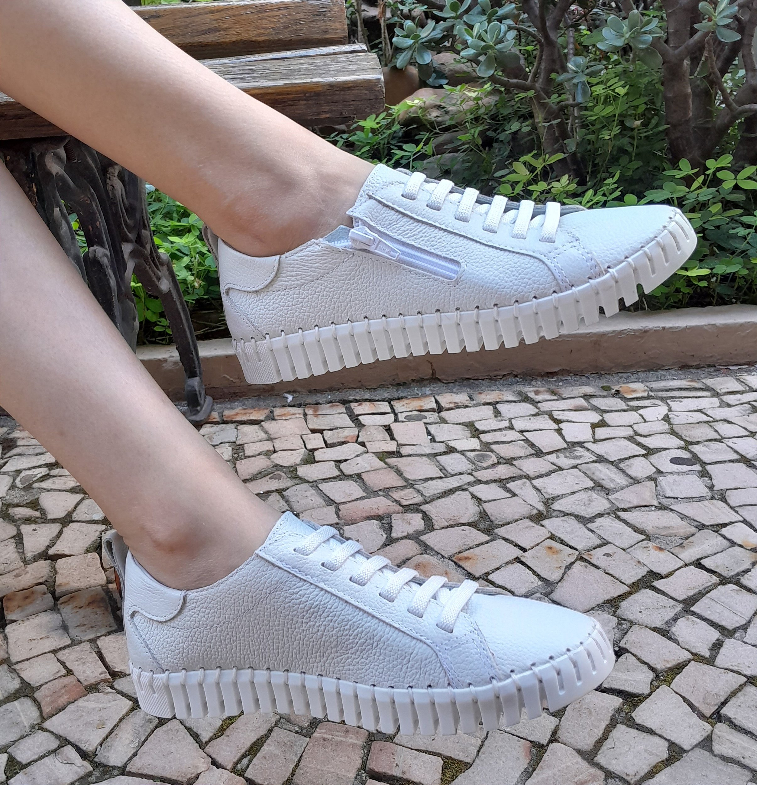 TÊNIS EM COURO 304004 BRANCO / CADARÇO EM ELÁSTICO E ZIPER LATERAL