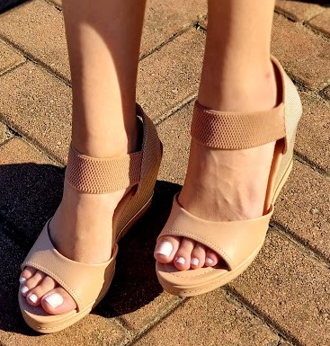 confortável sem abrir mão da altura. O elástico no peito do pé