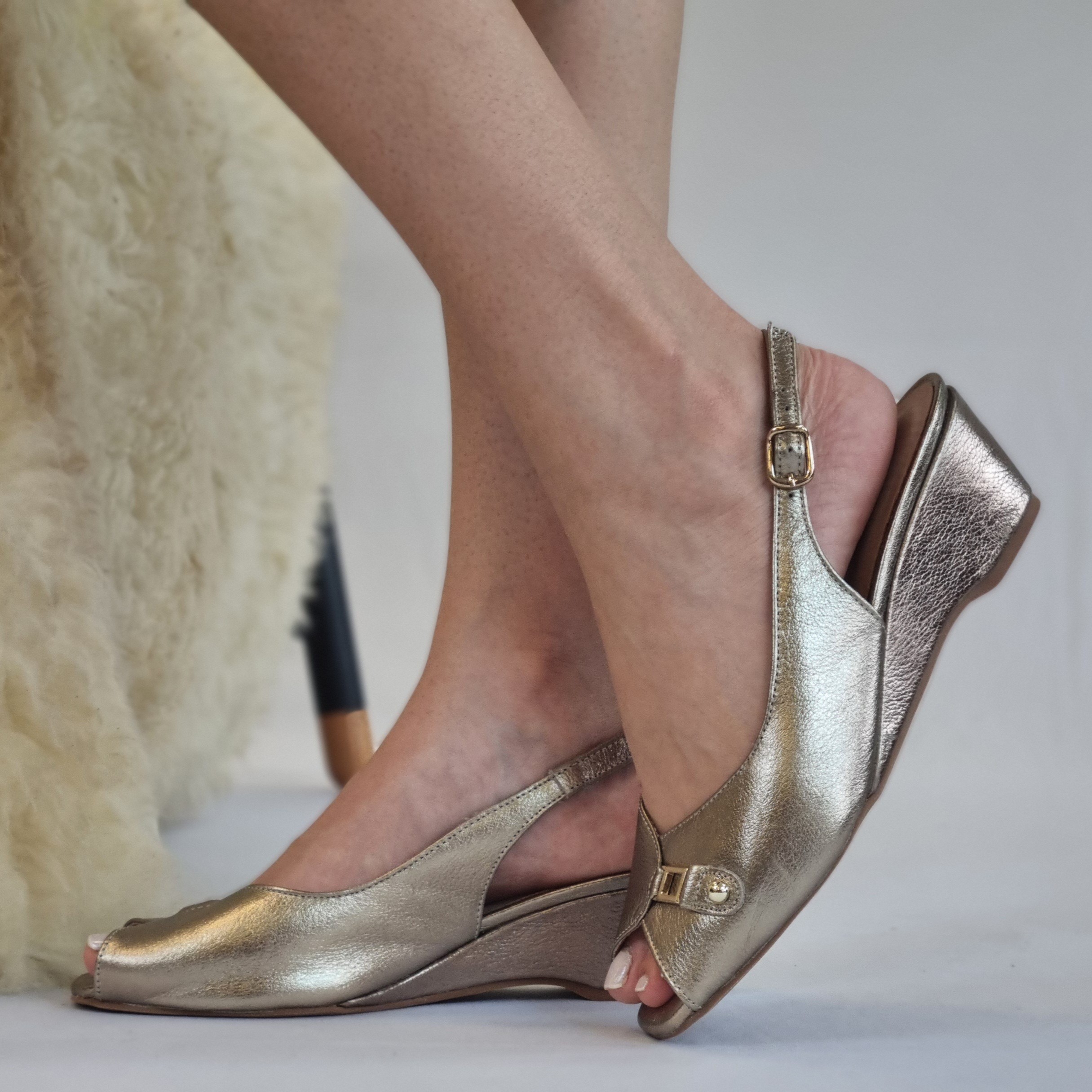 SANDÁLIA EM COURO ANABELA 114831 PRATA VELHO
