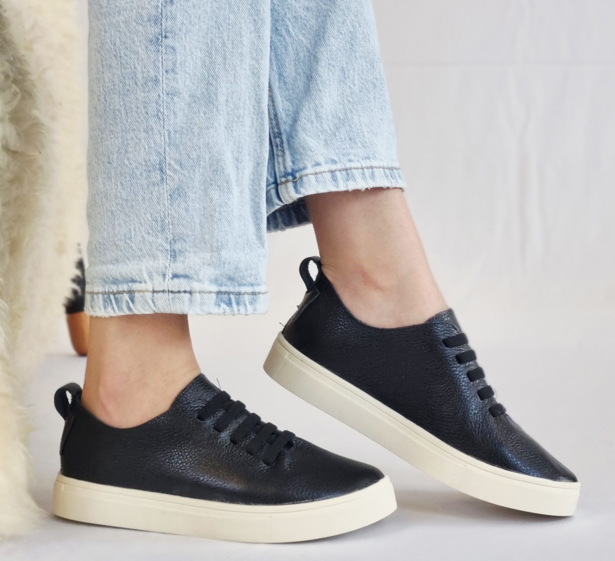 TÊNIS EM COURO 188537 PRETO / CADARÇO EM ELÁSTICO PRETO