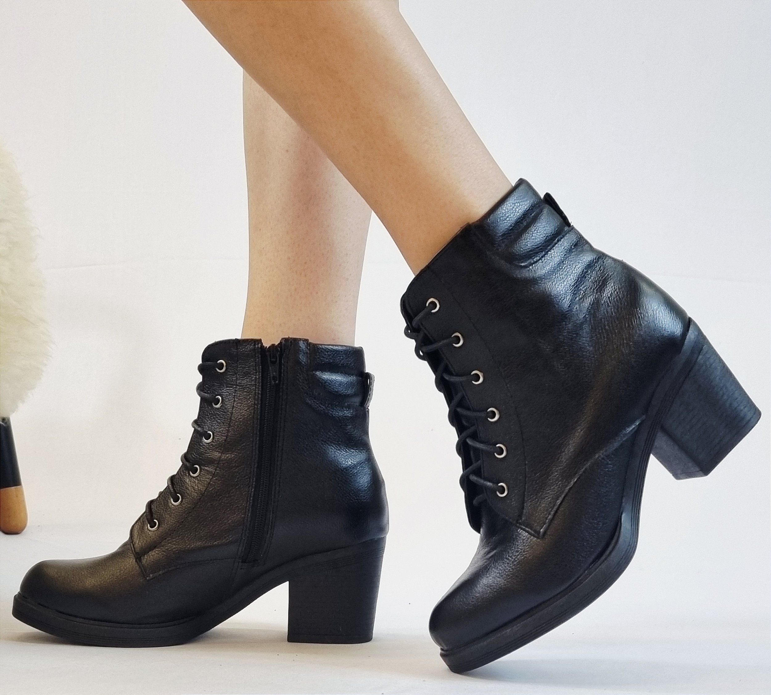 COTURNO EM COURO 791353 PRETO / COM CADARÇO E ZIPER