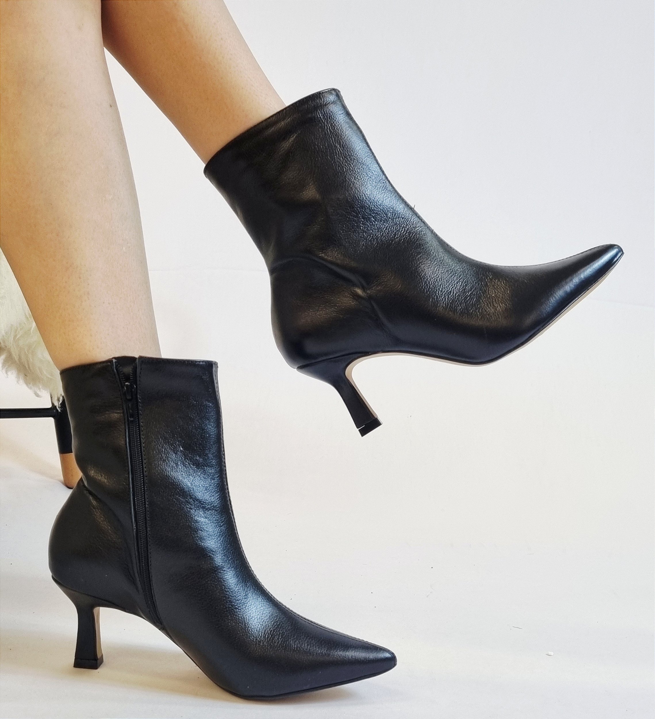 BOTA EM COURO 382285 PRETO / SALTO FINO / FORRAÇÃO INTERNA EM MALHA CACHARREL ACETINADA / PALMILHA MAIS ALTA E MACIA / SOLADO ANTIDERRAPANTE