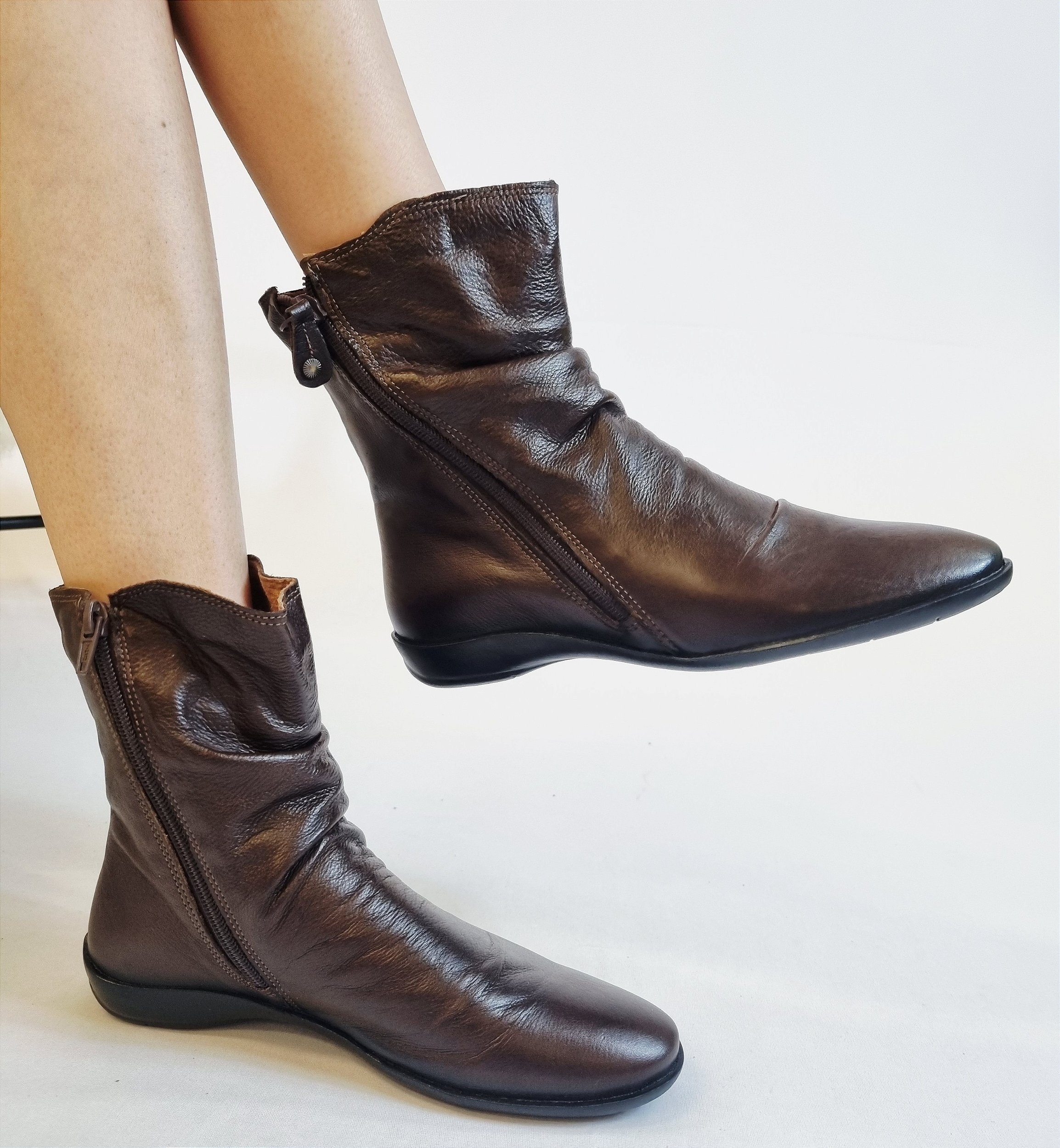 BOTA CONFORTO EM COURO BURNED 1004 TERRACOTA / CANO MÉDIO / FORRAÇÃO INTERNA EM MALHA CACHARREL ACETINADA / PALMILHA MAIS ALTA E MACIA / SOLADO EMBORRACHADO