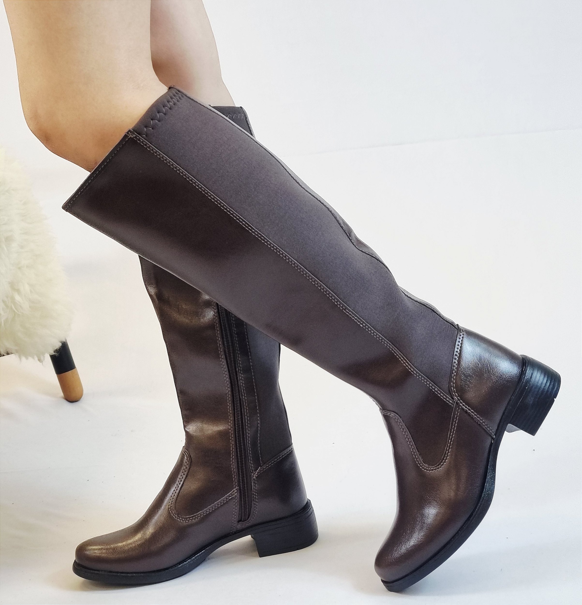 BOTA MONTARIA EM COURO 211760 CAFÉ / TRASEIRA EM ELASTANO E ZÍPER