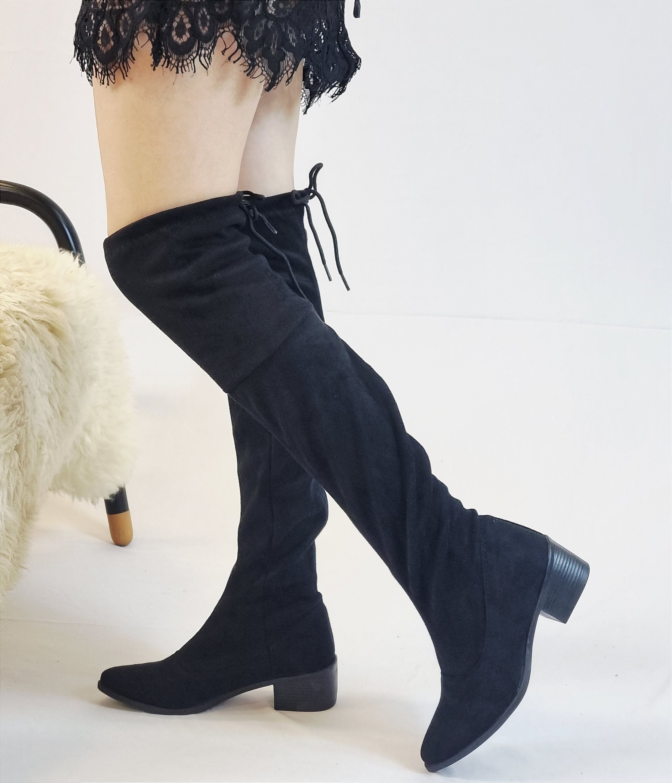 BOTA OVER EM CAMURÇA 211530 PRETA /AMARRAÇÃO COM CORDÃO