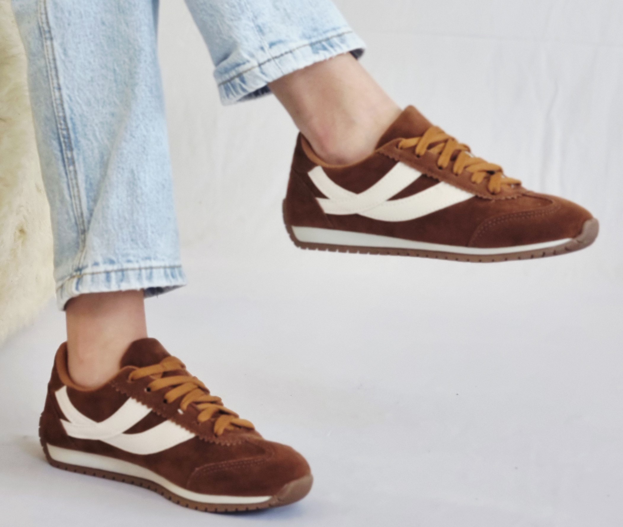 🔸 Detalhes em caramelo / tiras off white 🔸 Numeração 34 ao 39 🔸 Salto flat confortável 🔸 Material sintético