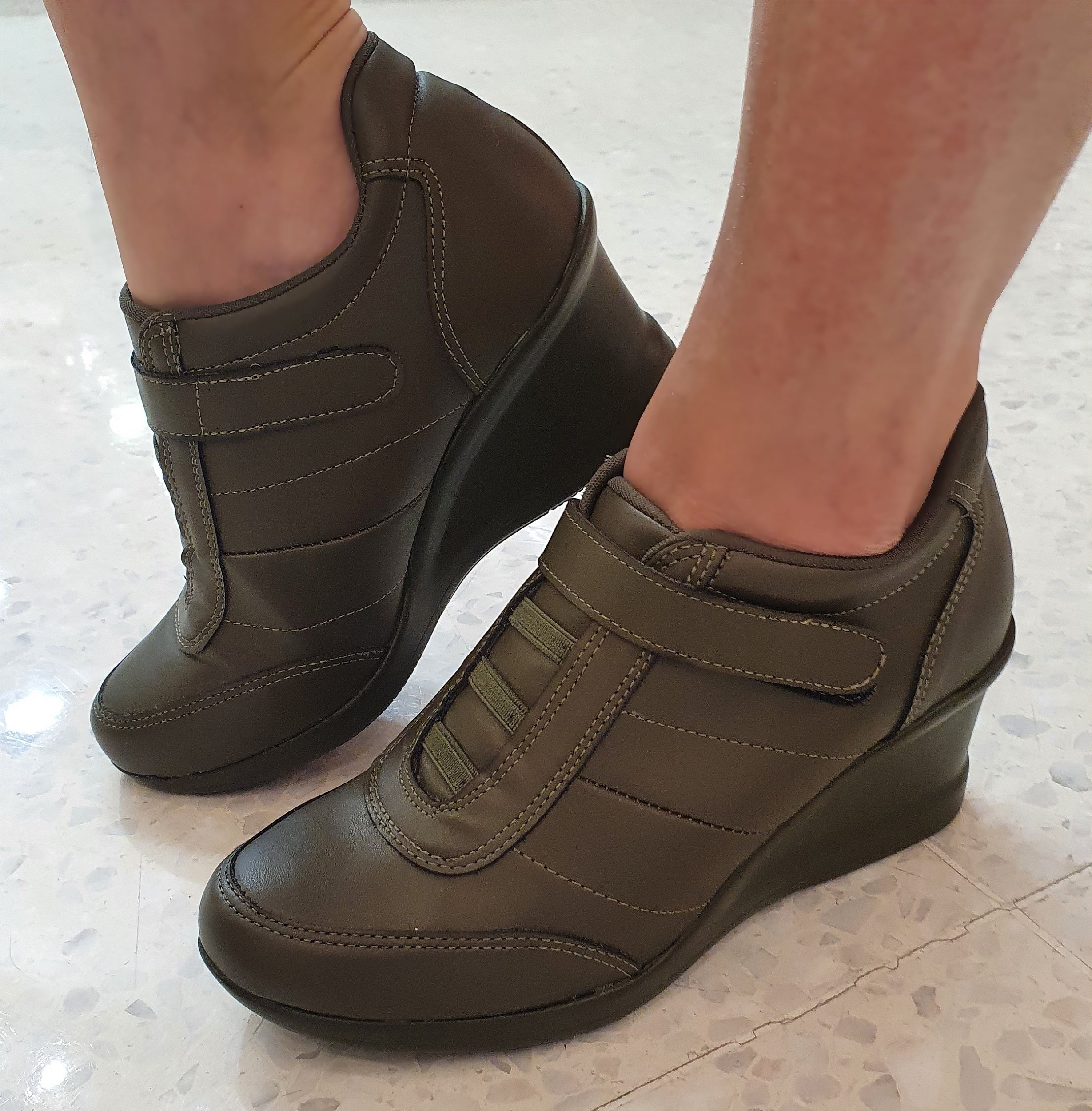 TÊNIS ANABELA VERDE MILITAR / CADARÇO EM ELÁSTICO QUE FACILITA O CALCA / SALTO SUPER LEVE E CONFORTÁVEL
